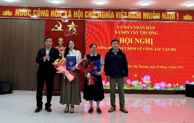 Tại hội nghị, thừa ủy quyền của Chủ tịch UBND xã, Trưởng phòng Văn hóa – Xã hội xã Sơn Tây Thượng, Hạ Ngọc Truyền đã công bố Quyết định số 1000/QĐ-UBND về việc điều động bà Lê Thị Xuân Hoa, Phó Chánh Văn phòng HĐND và UBND đến nhận công tác tại Phòng Văn hóa – Xã hội và bổ nhiệm giữ chức vụ Phó Trưởng phòng Văn hóa – Xã hội trong thời hạn 5 năm, kể từ ngày 12/12/2025 đến ngày 12/12/2030.