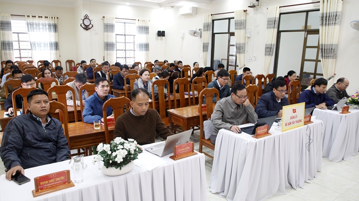 Các đại biểu dự Hội nghị tại điểm cầu xã Sơn Tây Thượng