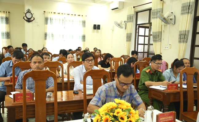 Các đồng chí lãnh đạo Đảng ủy, HĐND, UBND, Ủy ban MTTQVN xã. Lãnh đạo các cơ quan, ban, ngành, đơn vị và chuyên viên tham mưu công tác bầu cử của các cơ quan, đơn vị tham dự Hội nghị Quán triệt các văn bản về bầu cử đại biểu Quốc hội và HĐND các cấp nhiệm kỳ 2026 - 2031