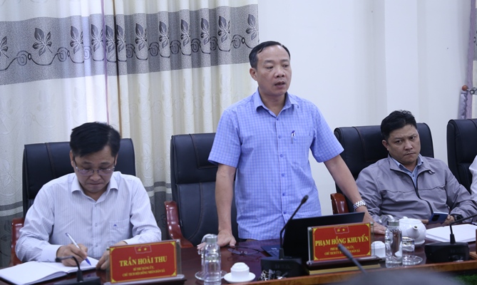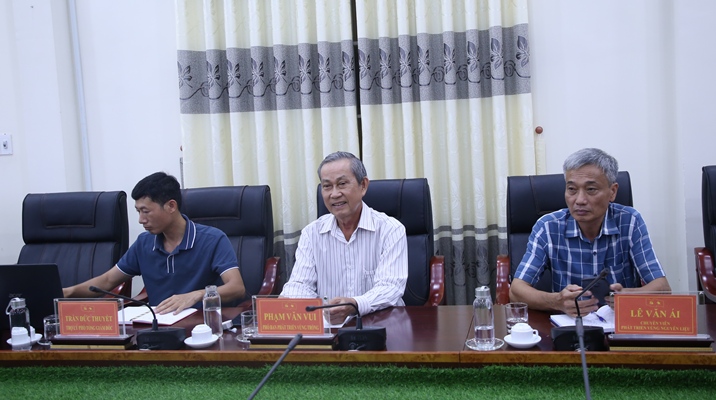 Đồng chí Trần Hoài Thu - Bí thư Đảng ủy, Chủ tịch HĐND xã phát biểu tại buổi làm việc