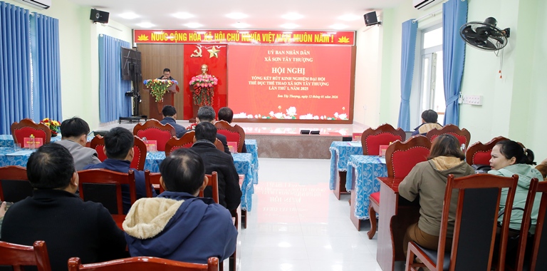 Theo báo cáo, UBND xã Sơn Tây Thượng đã tổ chức thành công Đại hội Thể dục Thể thao xã Sơn Tây Thượng lần thứ I, năm 2025, tiến tới Đại hội Thể dục Thể thao tỉnh Quảng Ngãi lần thứ I, năm 2026. Đây là sự kiện chính trị – văn hóa – thể thao quan trọng, góp phần thúc đẩy phong trào rèn luyện thân thể theo gương Bác Hồ vĩ đại trong cán bộ và Nhân dân trên địa bàn xã.