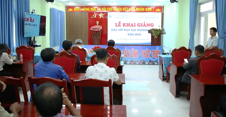 Sáng 4/10, Trường Cao đẳng Công nghệ và Kinh tế Bảo Lộc phối hợp với UBND xã Sơn Tây Thượng, tổ chức khai giảng lớp đào tạo nghề năm 2025 cho thanh niên và người lao động trên địa bàn xã Sơn Tây Thượng (Quảng Ngãi). Dự Lễ khai giảng có đồng chí Nguyễn Quyết Chiến – Phó Chủ tịch UBND xã Sơn Tây Thượng.