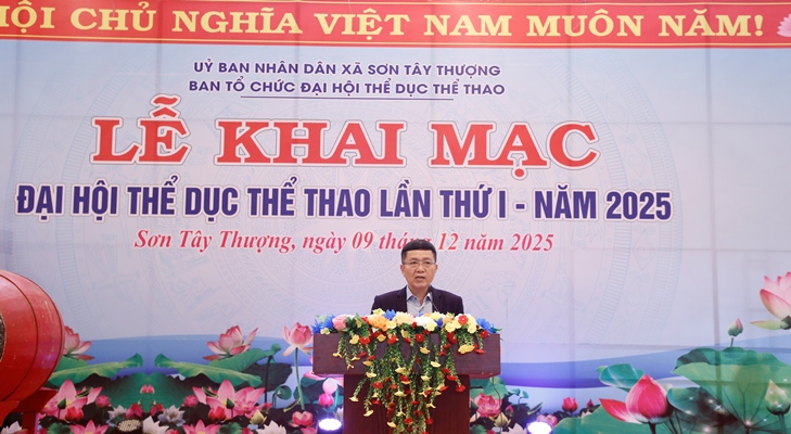 Phát biểu khai mạc, đồng chí Nguyễn Quyết Chiến – Phó Chủ tịch Thường trực UBND xã nhấn mạnh: Đại hội Thể dục thể thao xã Sơn Tây Thượng lần thứ I, năm 2025 là một trong những hoạt động hết sức có ý nghĩa, nhằm hưởng ứng phong trào “Toàn dân rèn luyện thân thể theo gương Bác Hồ vĩ đại”, góp phần nâng cao sức khỏe, đời sống văn hóa – tinh thần cho Nhân dân, tạo sự đoàn kết, thống nhất trong mọi hoạt động, tạo khí thế thi đua sôi nổi chào mừng Đại hội toàn quốc lần thứ XIV của Đảng…