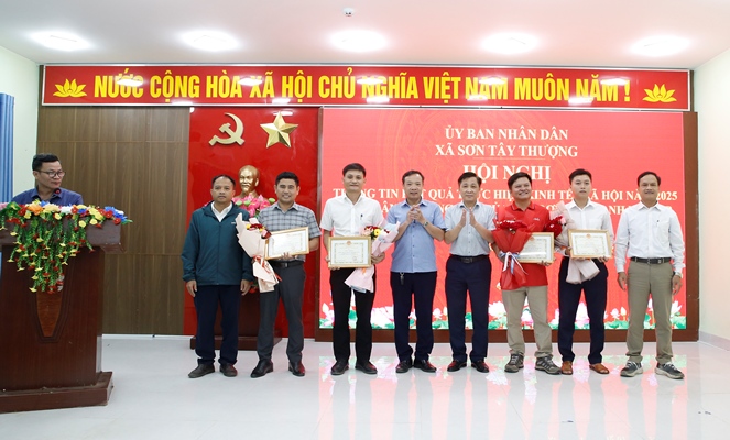 Hình ảnh khen thưởng cho các tập thể và cá nhân đã có nhiều đóng góp tích cực trong việc phát triển kinh tế xã hội trên địa bàn xã Sơn Tây Thượng năm 2025