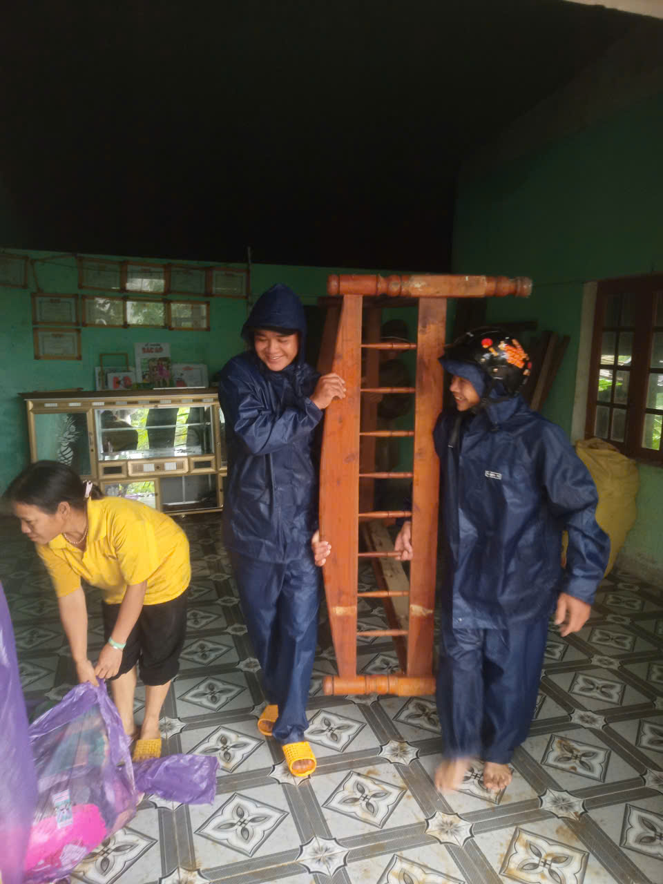 Lãnh đạo xã Sơn Tây Thượng: Thăm, động viên tặng quà cho người dân dân sơ tán, trú tránh lũ, sạt lở.